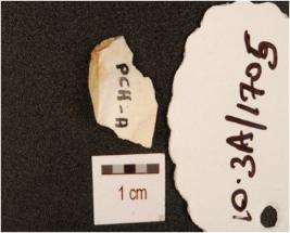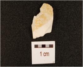 | Description / विवरण | A chert utilized flake with flake scars on dorsal, use wear marks on edge. |