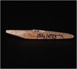 | Description / विवरण | A point made of bone with pointed ends and rough surface. |