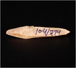 | Description / विवरण | A point made of bone with pointed ends and rough surface. |