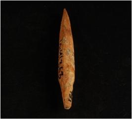 | Description / विवरण | A Point made of bone with one pointed end, slightly broken and rough surface . |