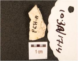 | Description / विवरण | A chert flake with flake scars on dorsal. |