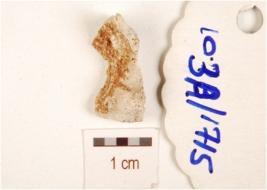 | Description / विवरण | Fragment of chert blade, prominent of mid ridge on dorsal, striking platform and diffused bulb on ventral. |