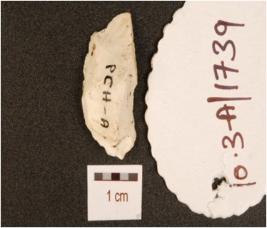 | Description / विवरण | A knife blade made on chert, mid-ridge on dorsal irregular edges and diffused bulb on ventral. |
