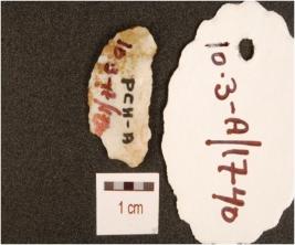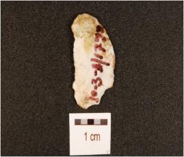 | Description / विवरण | A knife blade made on chert, mid-ridge on dorsal surface, irregular edges and diffused bulb on ventral surface. |