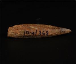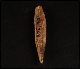 | Description / विवरण | A Point made of bone with one pointed end circular in section and several ridges visible. |
