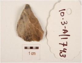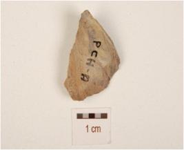 | Description / विवरण | A flake made on chert, flake scars on surface, irregular edges and prominent bulb on ventral surface. |