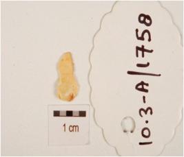 | Description / विवरण | A flake made on chert, flat surface and irregular edges. |