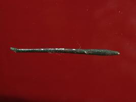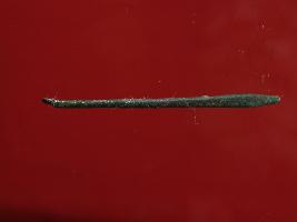 | Description / विवरण | Trench ZA1,Depth 9.30 mtrs B Peg B1,Stratum Pit no 12 sealed by lime floor Layer 27 Rod made of copper, broken on one end, presence of patina, surface of object is even and appearance is blackish. It might have been used as tool. |