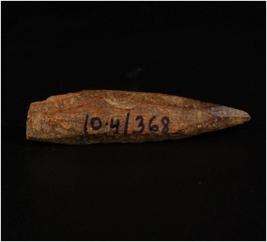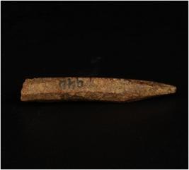 | Description / विवरण | A Point made of bone with one pointed end circular in section and several ridges visible. |