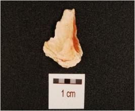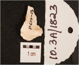 | Description / विवरण | A flake made on chert, scars on the surface and irregular edges. |