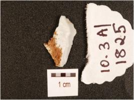 | Description / विवरण | A flake made on chert, scars on the surface and irregular edges. |