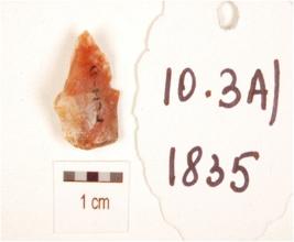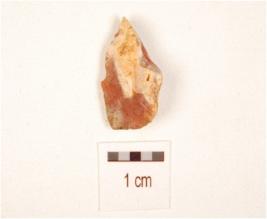 | Description / विवरण | A flake made on chert, scars on the surface and irregular edges. |