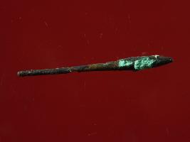 | Description / विवरण | Trench FX-3,LxB-D XXXII3 mtrs x 3 mtrs - 3.50 mtrs Below Peg XXVII3,Stratum Pit no 2 sealed by Layer 1 Copper Antimony Rod has patina over it, might have been used for various tool purposes. Surface is rough and uneven. Appearance is copper brown and little greenish due to patina. |