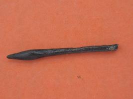 | Description / विवरण | Trench XA-4,LxB-D 3.80 mtrs x 7.85 mtrs - 0.15 mtr B peg ZA1,Stratum Layer 1 It is an eye rod, made up of copper, soft patina is present on its surface. It has smooth surface and very neatly finished. It might have used as an eye liner i.e. for decorative purpose. |