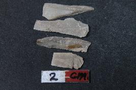 | Description / विवरण | Fragments of Blades with two dorsal ridges having smooth surface. One fragment amongst them has bulb of percussion on the ventral side. |