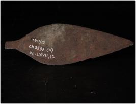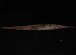 | Description / विवरण | Flat copper spear head sharp in character with a small handle. Rust formation is there and pointed tip. |