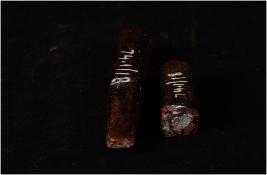 | Description / विवरण | A copper chisel broken in parts. It has a sharp tip and square cross section. Corroded and painted. |