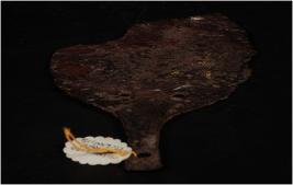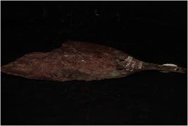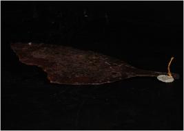 | Description / विवरण | A copper spear head with small handle and flat body. Pierced at top and has a tang and flat section. |