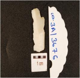 | Description / विवरण | A chalcedony blade with double ridge on dorsal, use wear marks on cutting edge and trapezoidal cross section. |