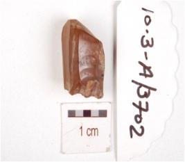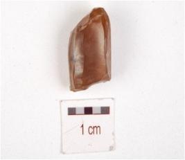 | Description / विवरण | Fragment of a core made on chalcedony, ridges and flake scars on surface. |