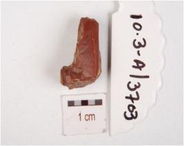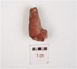 | Description / विवरण | Fragment of a utilized flake made on chert, ridges and flake scars on surface. |