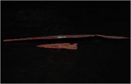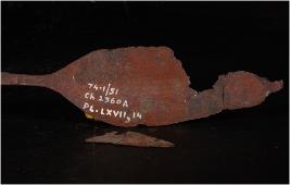 | Description / विवरण | Fragment of copper spear head. Surface is flat and broken. |