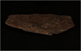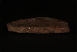 | Description / विवरण | Fragment of copper axe, half broken, flat surface and sharp edges. Surface is thick and corroded. |