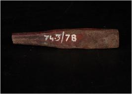 | Description / विवरण | Copper chisel upper part is shallow and bottom is flattened. Patina is there and chipped out at side. |