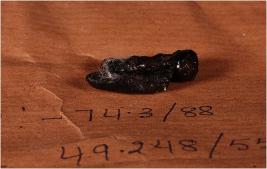 | Description / विवरण | A small copper nail, upper part is twisted and lower portion is sharp. Un even surface and rusted. |