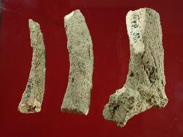 | Description / विवरण | Trench FX-3, Depth 6.20 mtrs,B peg XXVII3, Stratum Rain Gulley sealed by C28A There are three pieces of deer horns, made of bone. Surface of these is porous, rough and uneven. The colour of object demolished to light grey from white. It also might be used as scratching tool or might be internal weaving of beds. |