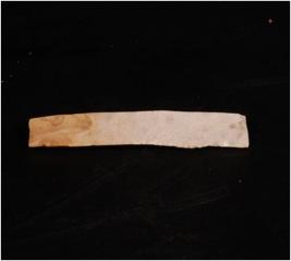 | Description / विवरण | A Parallel sided blade made of Chert with a mid-ridge on dorsal side, diffused bulb on the ventral side, use-wear marks along the cutting edges. Broken at proximal end. |