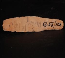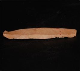 | Description / विवरण | A Parallel sided blade made of Chert with two ridges on dorsal side and use-wear marks along the cutting edges. Detached from a prepared core. |