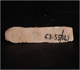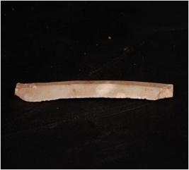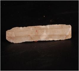 | Description / विवरण | A Parallel sided Blade made of Chert with two ridges on dorsal side, detached from a prepared core, use-wear marks along the cutting edges, slightly broken at proximal end and a bulb on the ventral. |