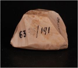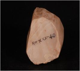 | Description / विवरण | A core on Chert with 5 blade and 3 flakes scars on surface. |