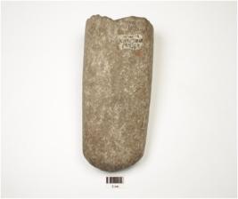 | Description / विवरण | Fragment of celt made on basalt broken butt end, other end is sharp and plano-convex cross-section. |