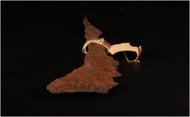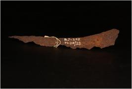 | Description / विवरण | Iron sickle, one edge is plain and other has curves, partly broken. One end is pointed, thin in character, rusted. |