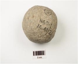 | Description / विवरण | Stone ball with rough surface and uneven. |