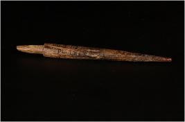 | Description / विवरण | A bone knitting needle with pointed one end and polished another end. |