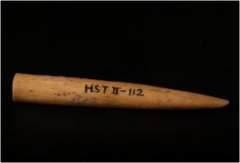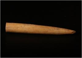 | Description / विवरण | A bone knitting needle with pointed one end. |