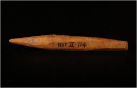 | Description / विवरण | A bone knitting needle with pointed one end. |