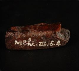 | Description / विवरण | A copper chisel long in shape. One end is sharp and flat and another end is in square, painted and partly broken. |