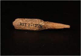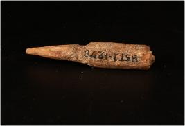 | Description / विवरण | A bone knitting needle with pointed one end and polished another end. |