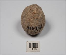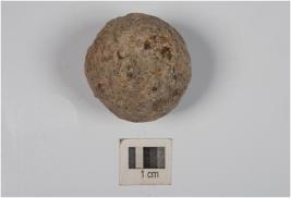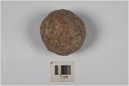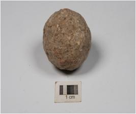 | Description / विवरण | A small stone ball with rough surface and circular section. |