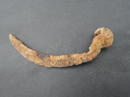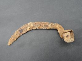 | Description / विवरण | Trench SGL-2 ZA , Length 1.00 M Breadth 5.50 m, Depth 1.50 MBS from III, Stratum Layer 2 It is an iron stickle. It seems to be used as tool. Surface is craggy, uneven and rough. Colour is rusty brown. |
