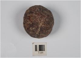 | Description / विवरण | A small stone ball with rough surface and circular section. |