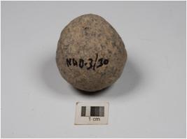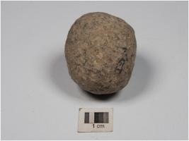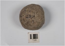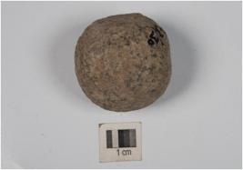 | Description / विवरण | A small stone ball with rough surface and circular section. |