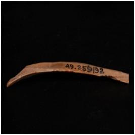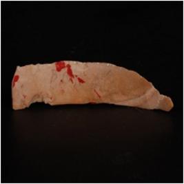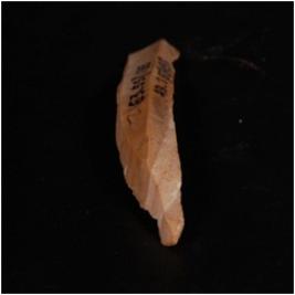 | Description / विवरण | A chert blade with single ridge on the dorsal side and pointed at proximal end. Slightly broken cutting edge. |