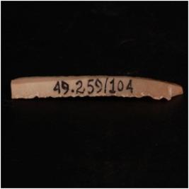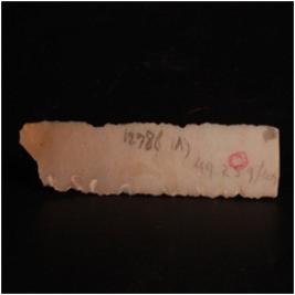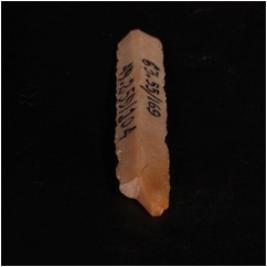 | Description / विवरण | A chert blade with a ridge on dorsal. Slightly curved and broken at one end. |