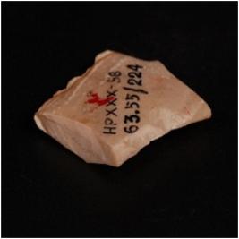 | Description / विवरण | A chert blade with two flaking marks on dorsal side. |