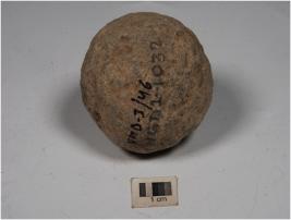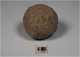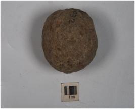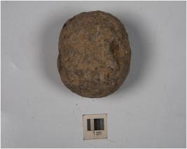 | Description / विवरण | A stone ball with uneven shape and rough surface. |